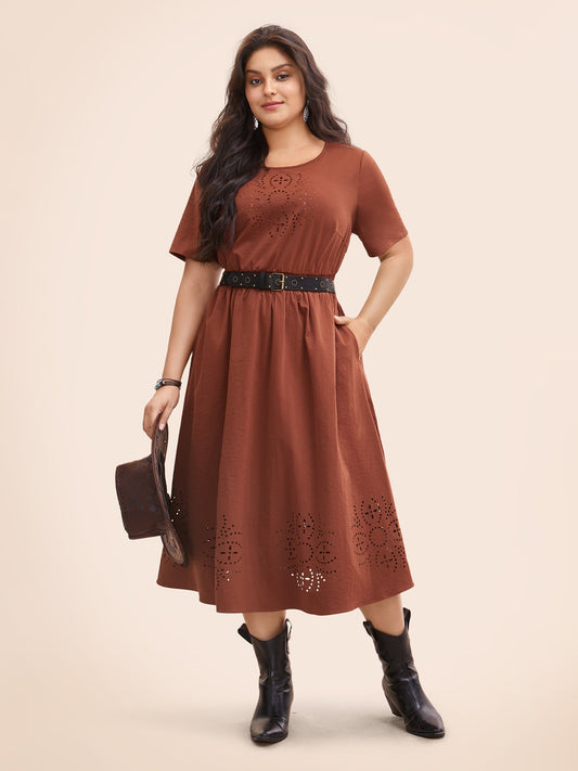 Jacquard Mesh Cap Sleeve Shirred Dress