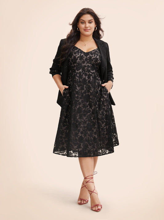 Floral Woven Ribbon Heart Neckline Cami Dress