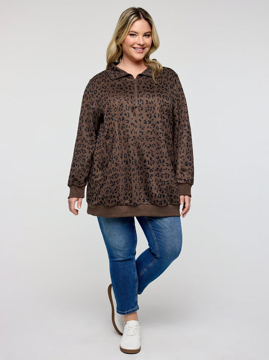 Leopard Print Half-Zipper Sweatshirt