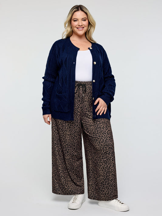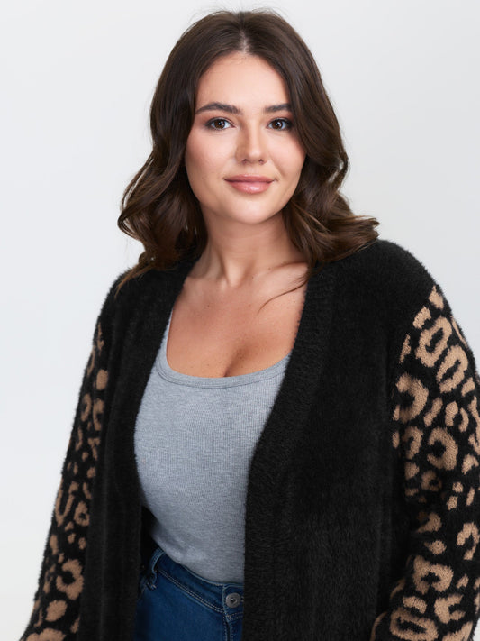 Leopard Jacquard Furry Open-Front Knit Cardigan