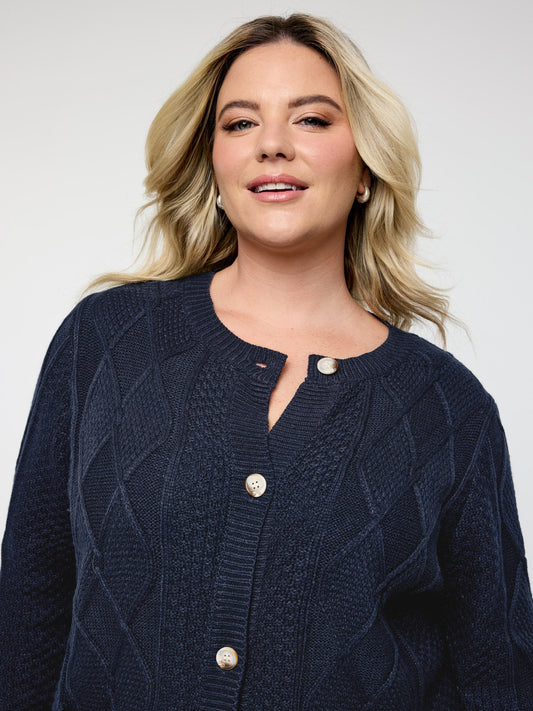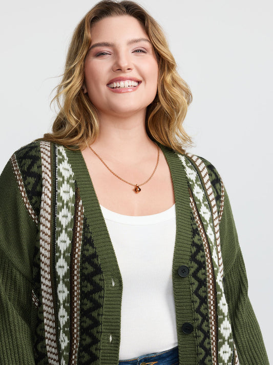 Textured Button-Front Straight Sleeve Knit Cardigan