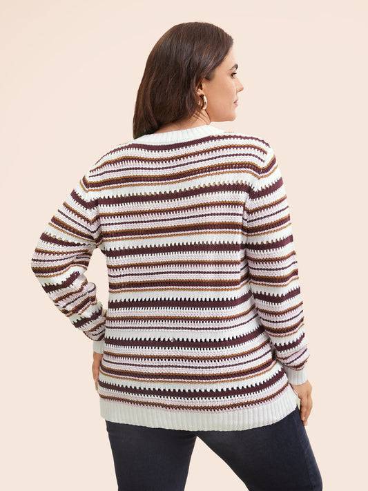 Striped Overlap Collar Ruffle Sleeve Midi Dress
