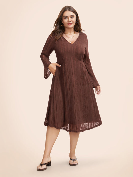 Solid Lace Patchwork Mesh Bell Sleeve Dress