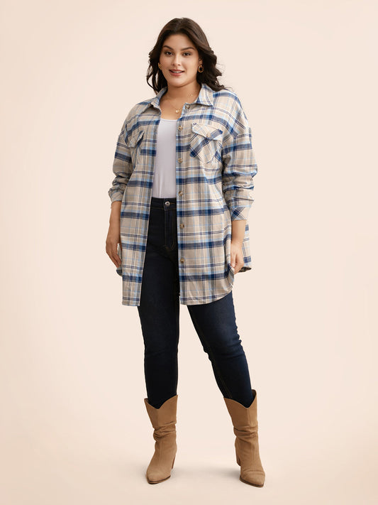 Cotton Shirt Collar Plaid Patched Pocket Jacket