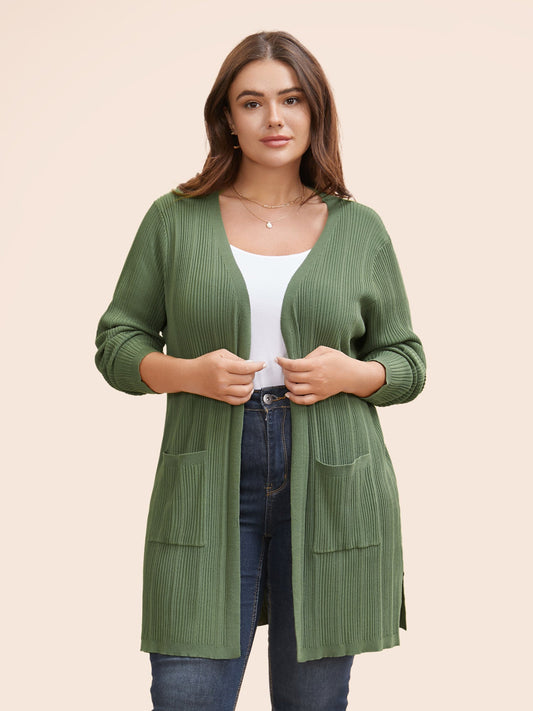 Plain Textured Split Hem Patch Pocket Cardigan