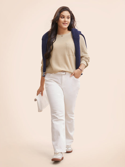 Crew Neck Rib Knit Patched Pocket T-shirt