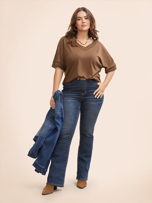 V Neck Woven Ribbon Dolman Sleeve T-shirt