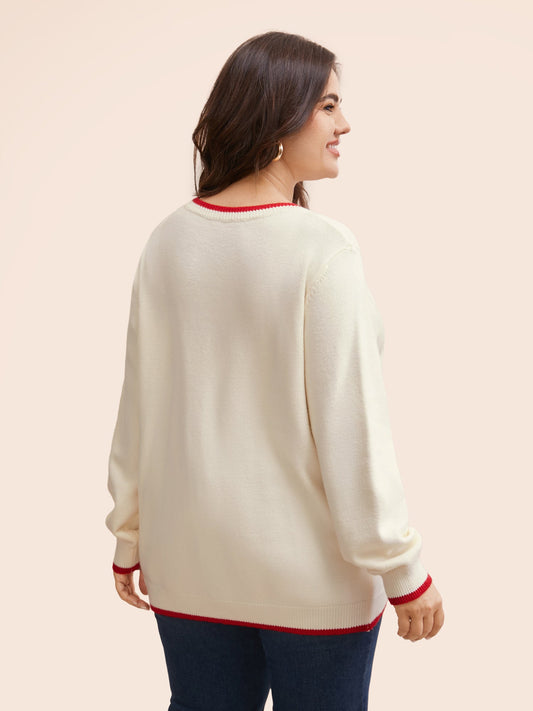 Tomato Pattern Embroidered Contrast Trim Pullover