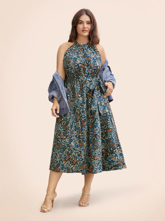 Bandana Print Halter Belted Pocket Dress