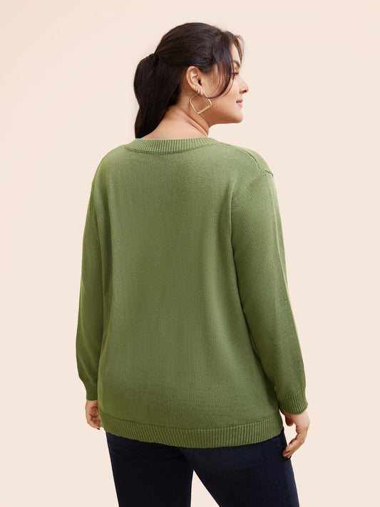 Round Neck Solid Cut Out Pullover