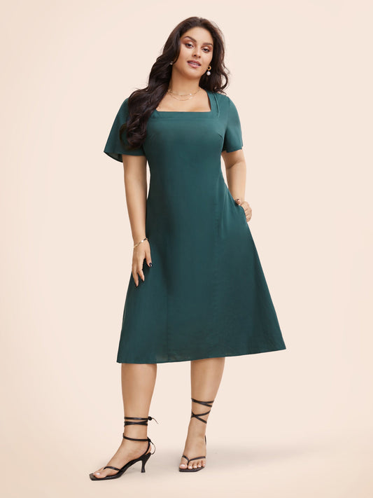 Square Neck Ruffle Sleeve Shirred Dress