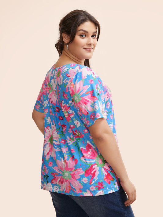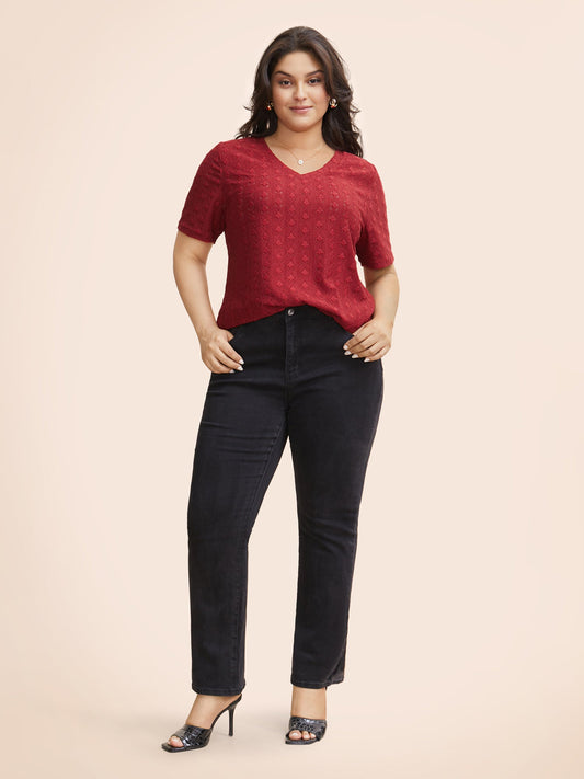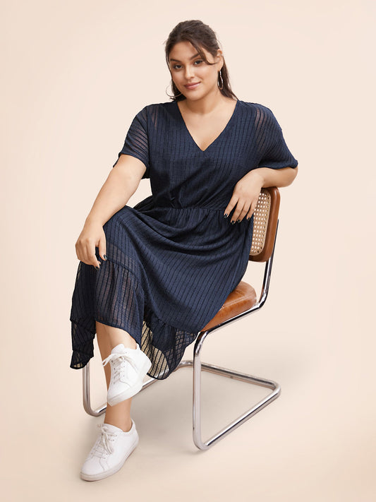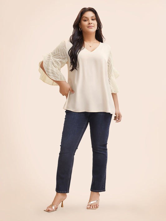 V Neck Mesh Patchwork Flutter Sleeve Blouse
