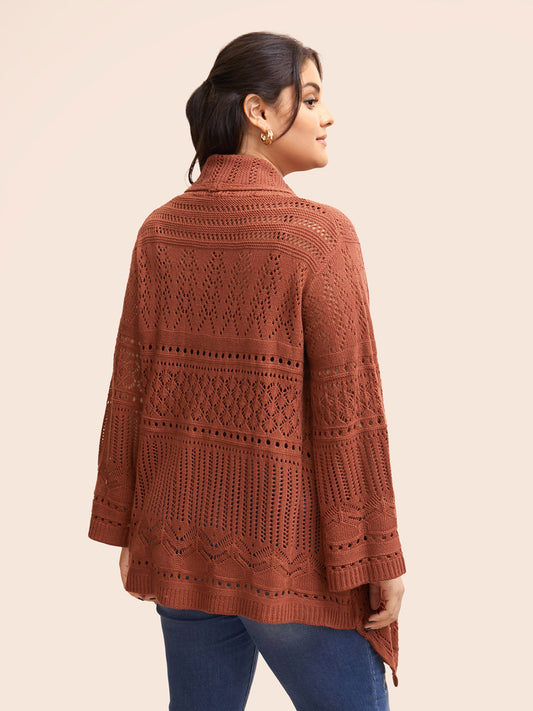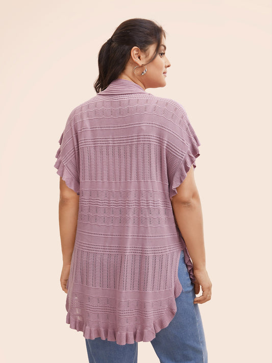 Plain Textured Patchwork Ruffle Trim Cardigan