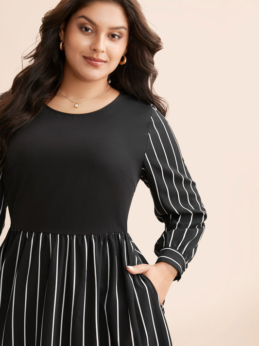 V Neck Contrast Patchwork Rib Knit T-shirt
