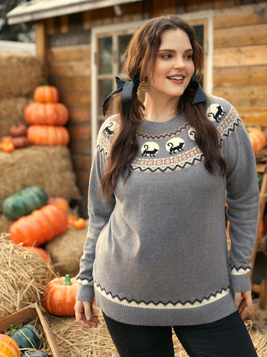 Supersoft Essentials Wicked Cat Fair Isle Yoke Printed Pullover