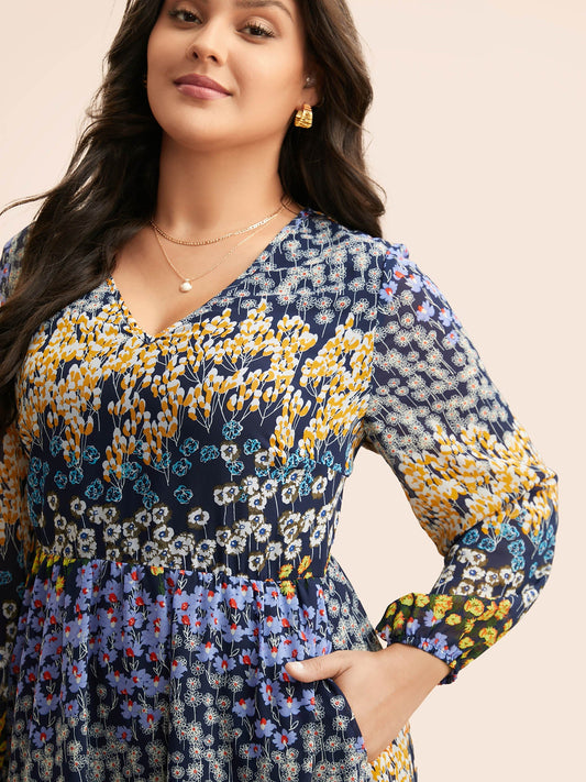 Chiffon Ditsy Floral Lantern Sleeve Dress