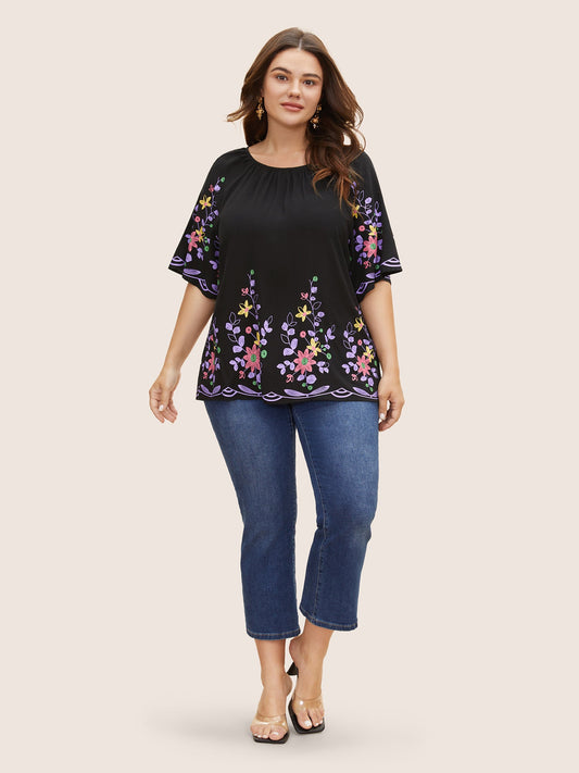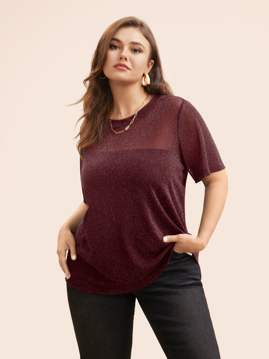 Plain Jacquard Notched Dolman Sleeve T-shirt