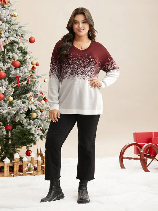 Holiday Gradient Jacquard Pattern V-neck Pullover