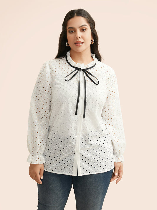 Lace Collar Broderie Anglaise Tie Knot Blouse