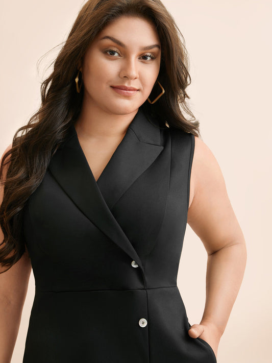 Suit Collar Contrast Patchwork Sleeveless Dress