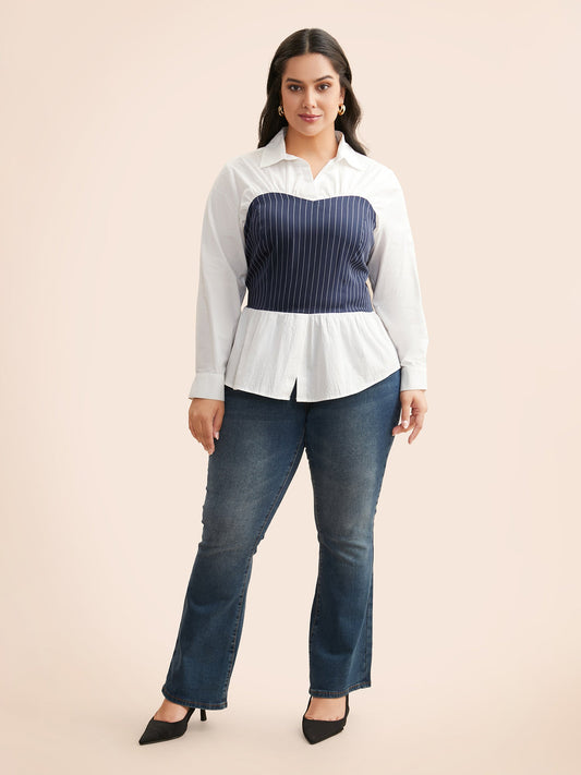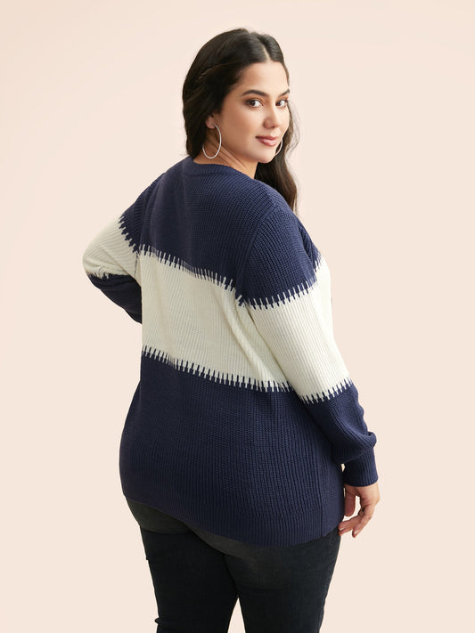 2-In-1 Striped Patchwork Button Detail Sweatshirt