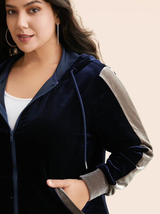 Velvet Contrast Patchwork Hooded Sweatshirt