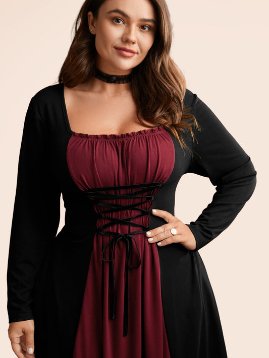 Stretchy Knit Adjustable Tie Frill Trim Midi Dress