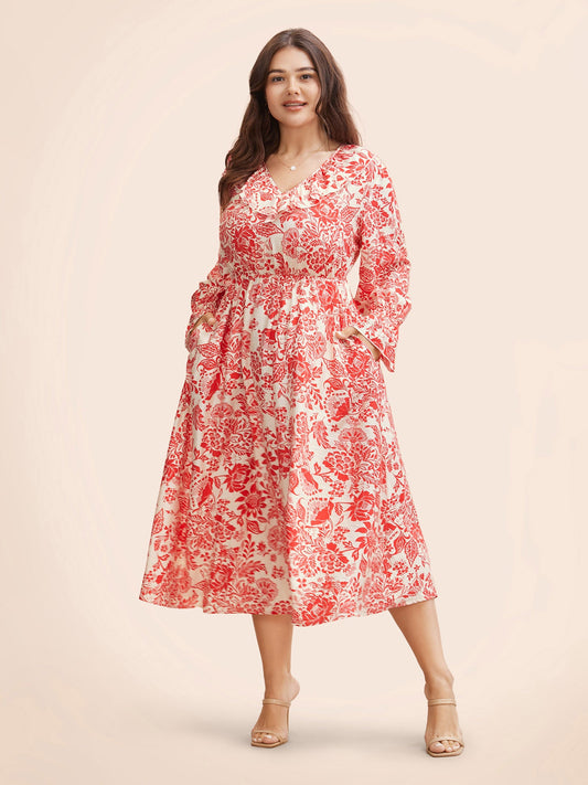 Floral Lantern Sleeve Ruffle Trim Dress