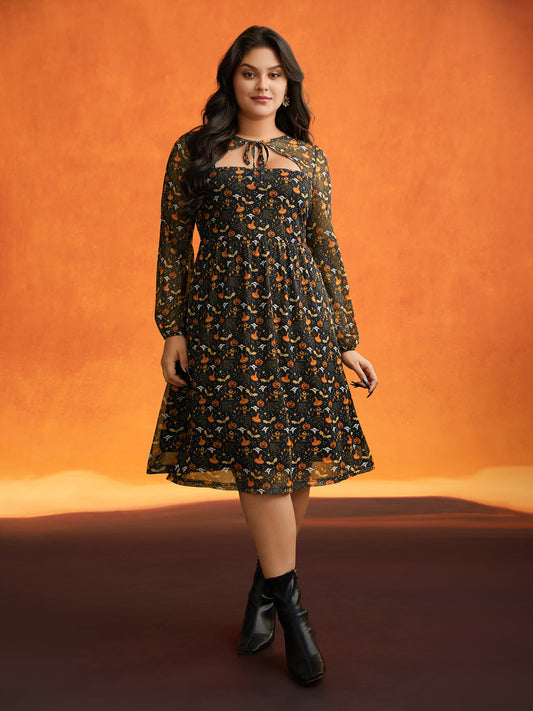 Sheer Ghost Glam Cut Out Neck Midi Dress
