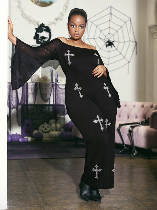 Gothic Glam Off-Shoulder Waist-Cinching Jumpsuit