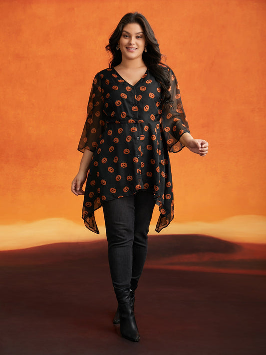 Pumpkin Asymmetrical Hem Mesh Blouse