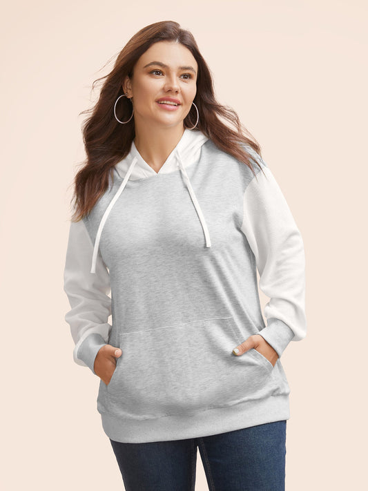 Contrast Patchwork Pocket Hooded Drawstring Sweatshirt