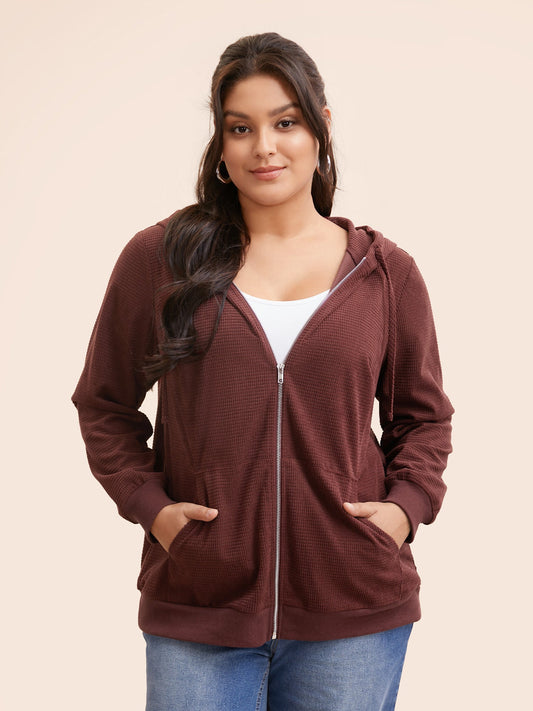 Solid Corduroy Hooded Drawstring Sweatshirt