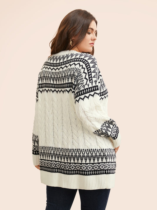 Bandana Jacquard Cable Knit Pocket Cardigan