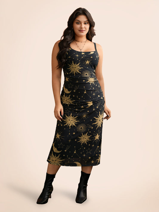 Round Neck Cable Knit Ruffle Trim Sweater Dress