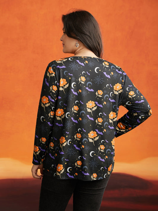 Skull Pattern Mesh Fabric Turtleneck T-shirt