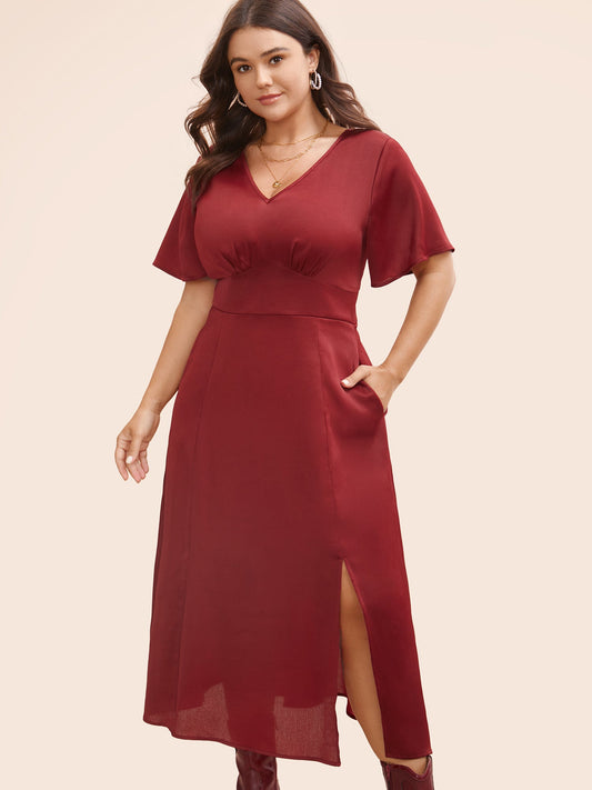 Pearl Beaded Petal Sleeve Stretch Blouse