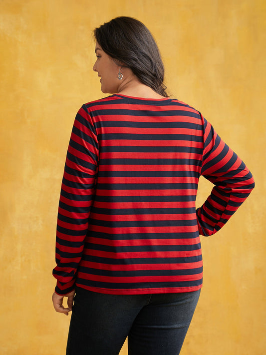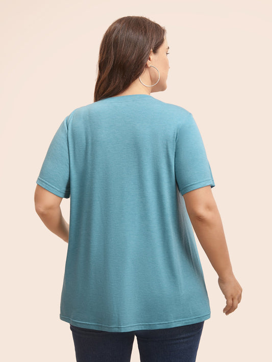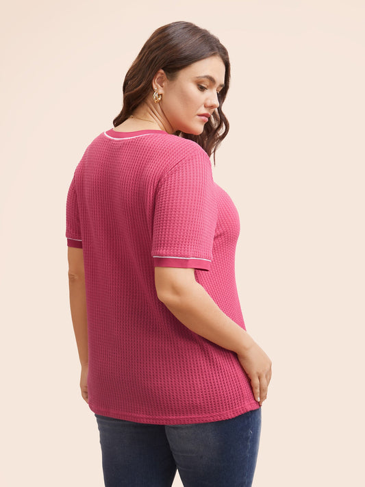 Crew Neck Waffle Knit Contrast Trim T-shirt