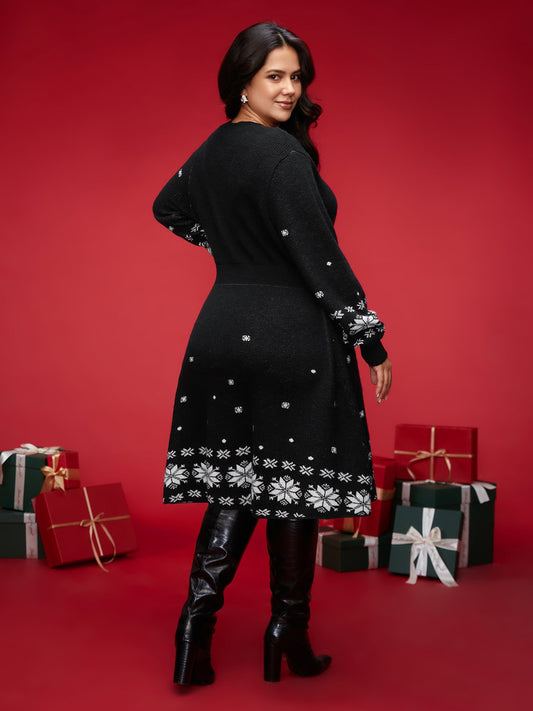 Snowfall Jacquard Pattern Midi Sweater Dress