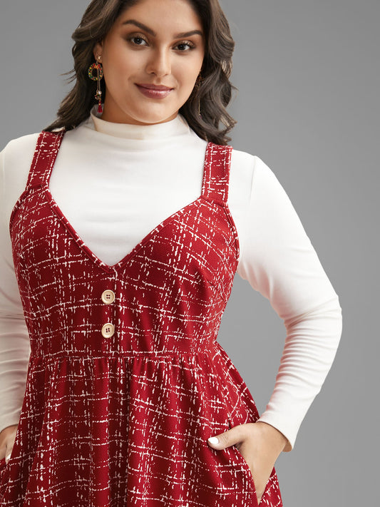 Plaid Cami Front Button Midi Dress