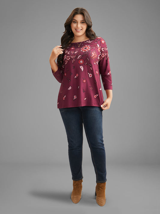 Floral Print Round Neck Fitted Tee