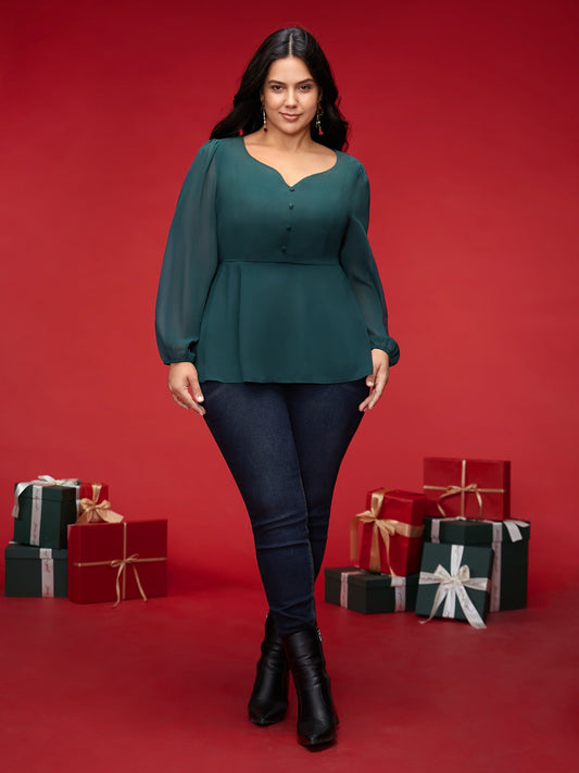 Puff Sleeves Front Placket Chiffon Blouse