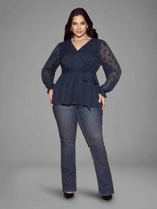 Burn-out Fabric Surplice Neckline Shirt