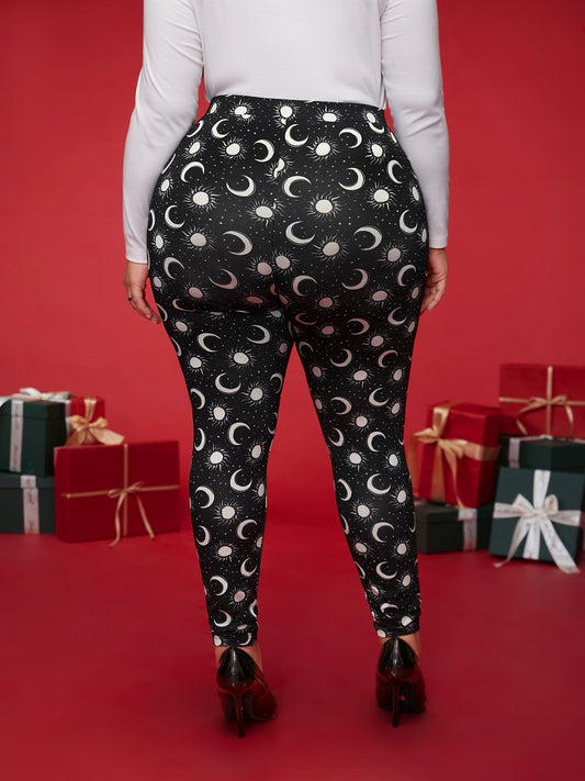Star And Moon Print Slim-Fit Leggings