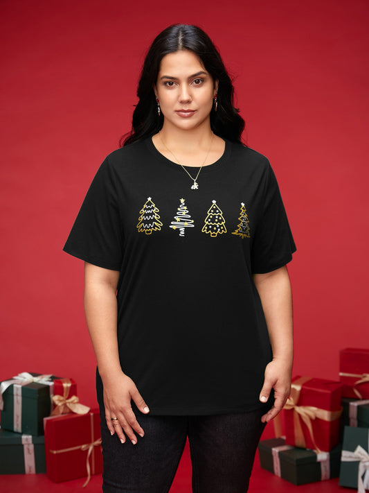 Shimmering Trees Half Sleeves Slim-Fit Tee