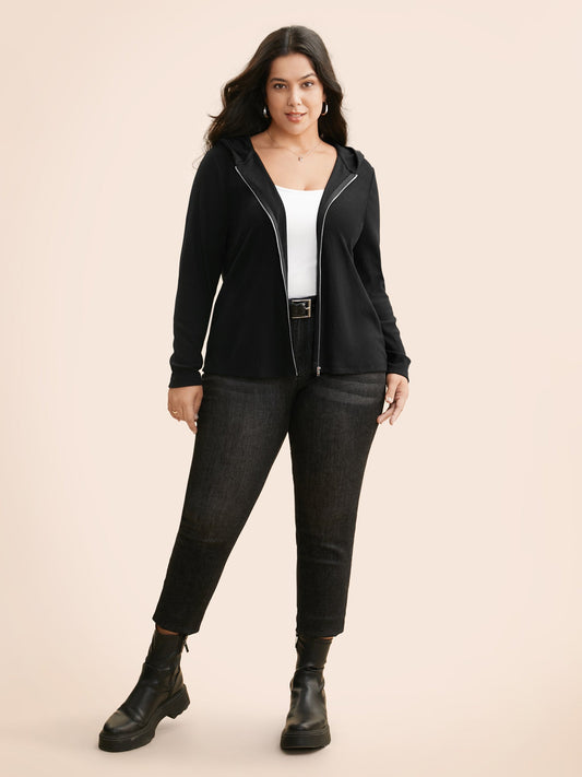 Floral Texture Slit Hem Patch Pocket Cardigan