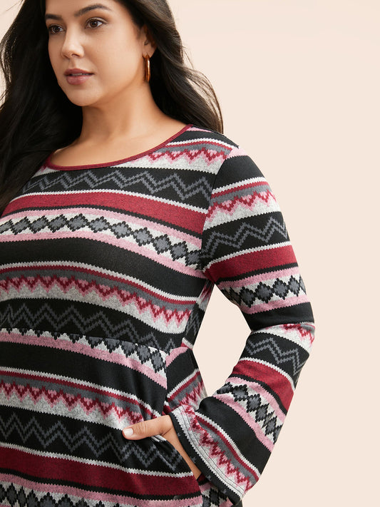 Geometric Striped Bell Sleeve Knit Dress