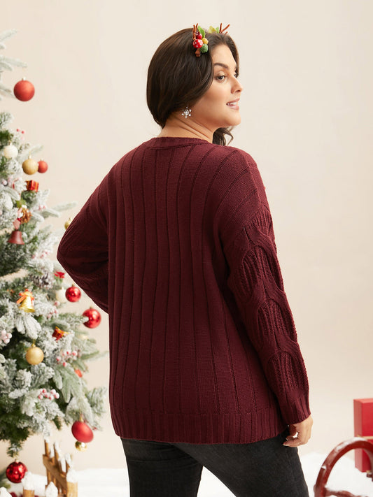 Tis The Season Motifs Cable Knit Pullover