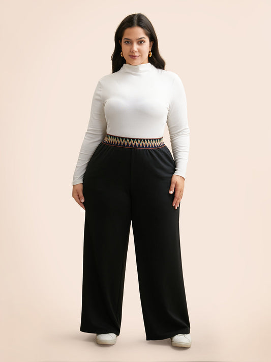 Geometric Contrast Patchwork Wide Leg Pants