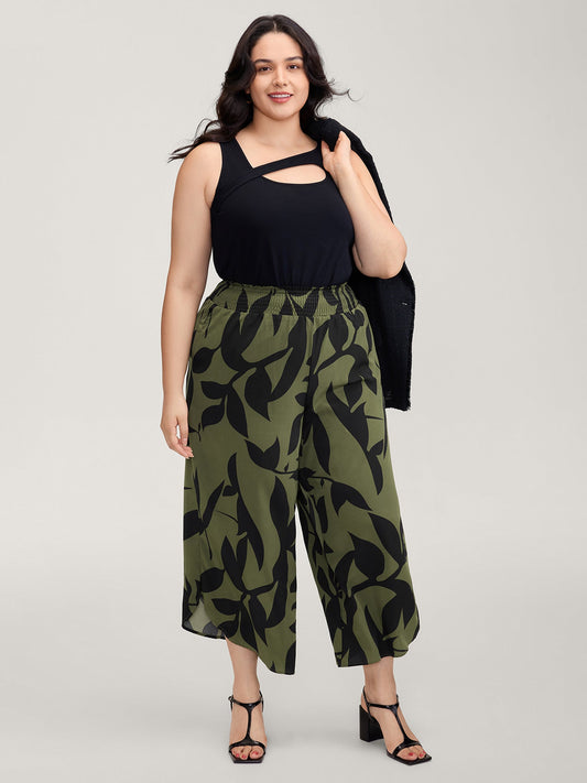 Shirred Waist Surplice Wide-Leg Jumpsuit